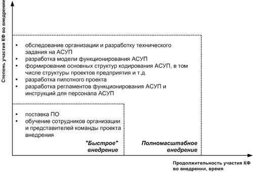 С точки зрения консалтинговой фирмы в первом случае речь идет о таком называемом «быстром внедрении», во втором - о полномасштабном внедрении (Рис. 1).